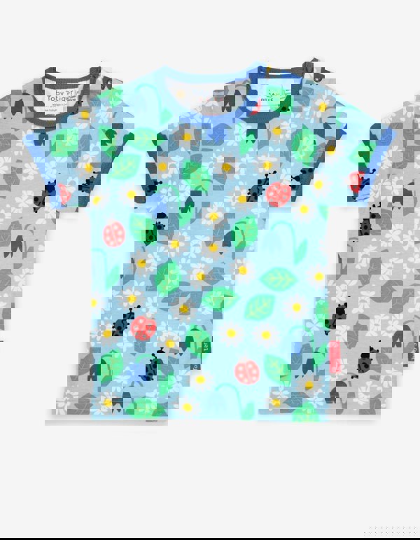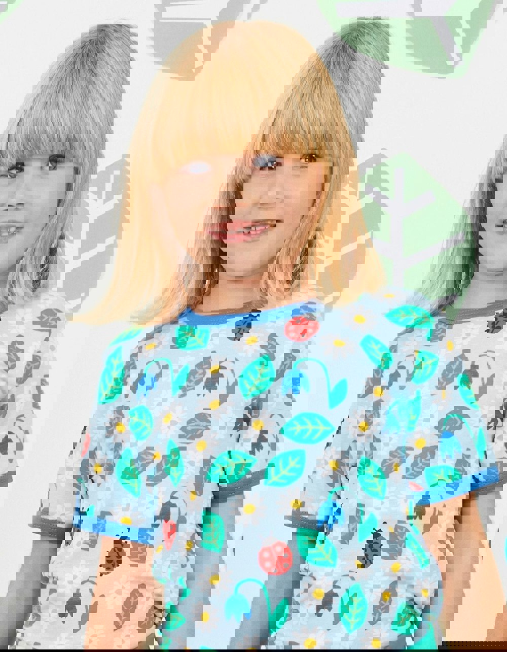 Spring is in the air with our English garden colourful organic T-shirt. Super soft, the sky-blue trim finishes it off with serious summer style. Our smaller sizes come with poppers on the neck to make changing that little bit easier. Looks fab under a pair of our organic dungarees, shorts or leggings. Going wild for this print? Check out our English Garden organic childrenswear collection online at Toby Tiger.