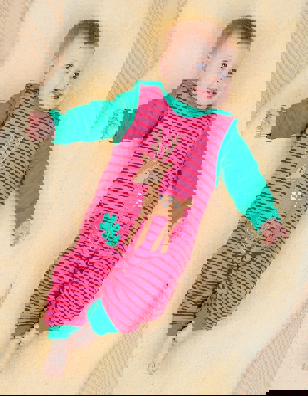 Take life easy in these super comfy, organic slouchy dungarees - slungarees! Our fawn applique is foraging for a tasty treat - is that a toadstool on the back? This slouchy style features comfy ankle bands and leg poppers for easy changing. So comfy you might forget you're wearing them, these organic slouchy dungarees - slungarees - take loungewear to the next level. With a cute fawn applique in search of a snack, your little one will be in style no matter what adventure (or nap) comes your way. Plus, with ankle bands and easy leg poppers, changing time is a breeze. Love this look? Check out our Forest Adventure organic childrenswear collection online at Toby Tiger.