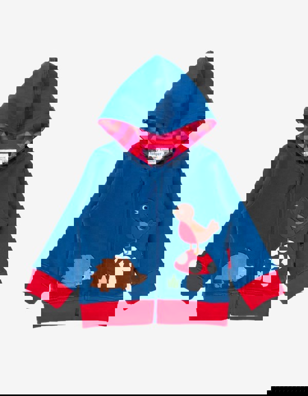 Celebrating nature with our stitched hedgehog, bird, floral and toadstool appliques. Made from 100% certified organic cotton in vibrant autumnal navy, the cosy striped lining adds extra-cosy warmth. Mix and match from our Floral Mushroom print collection of ethical, organic childrenswear.