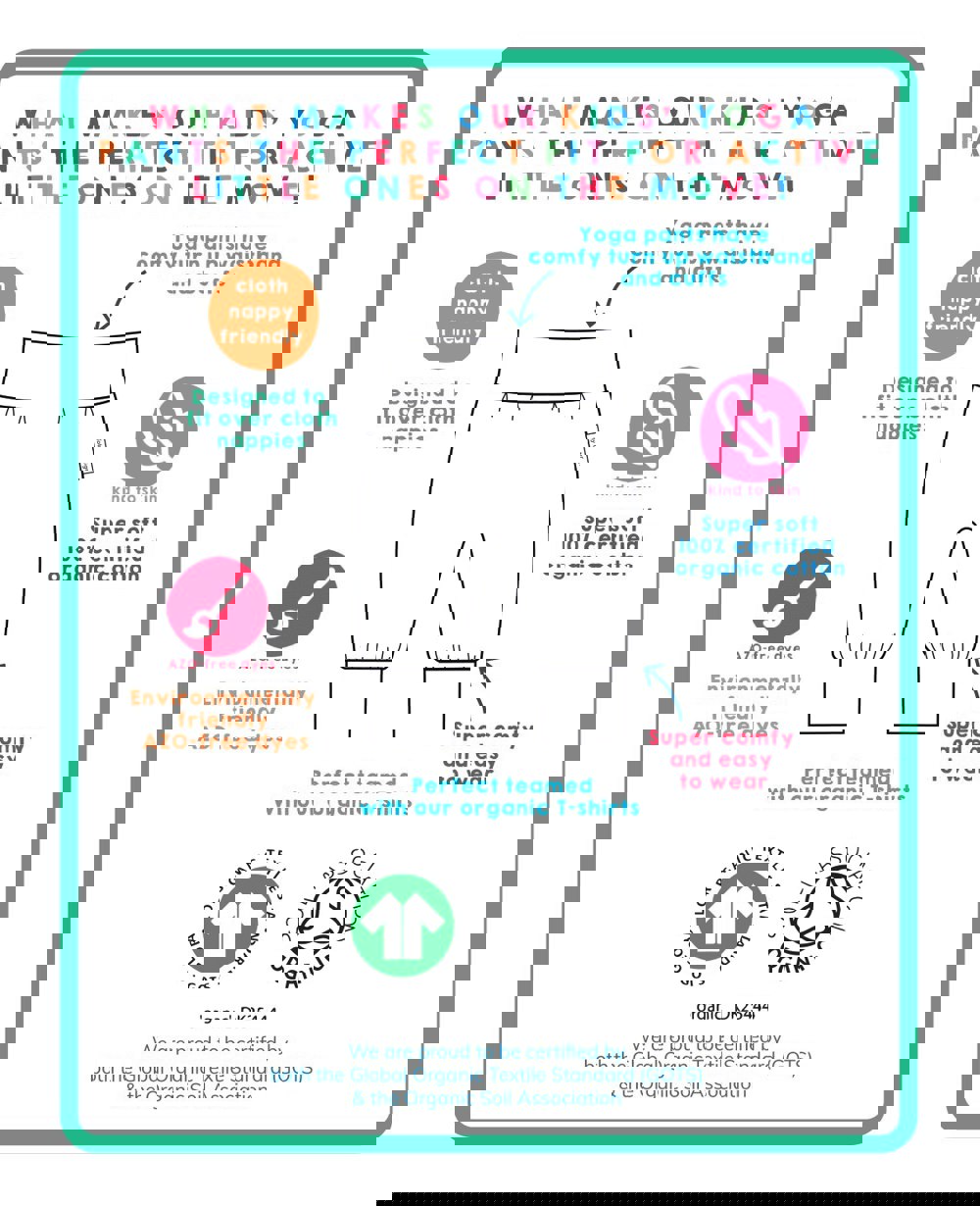 Kicking little legs call for our roomy, cosy organic kids yoga pants - with enough stretch and comfort for all activities. With contrasting pink waist and ankle bands, our horse print complete with her favourite apple snack, our yoga pants are made from the softest organic cotton. You can add one of our plain or applique organic T-shirts to complete the look. Or, mix and match from our Horse and Apple organic range of children's clothes at Toby Tiger.