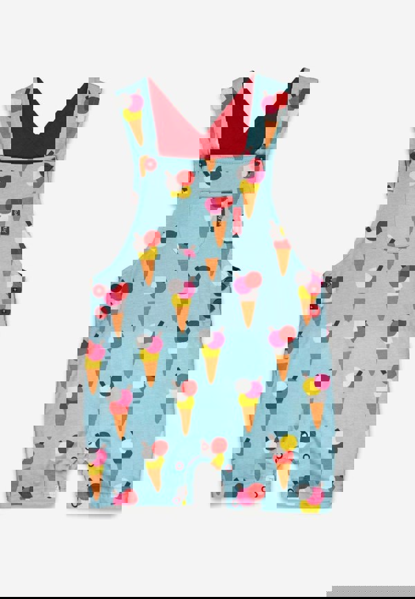 Get ready for some serious cuteness with our Organic Ice Cream Cones Print Dungaree Shorts! Made with 100% GOTS-certified organic cotton, these light blue shorts feature a playful ice cream print and adjustable straps for a perfect fit.
