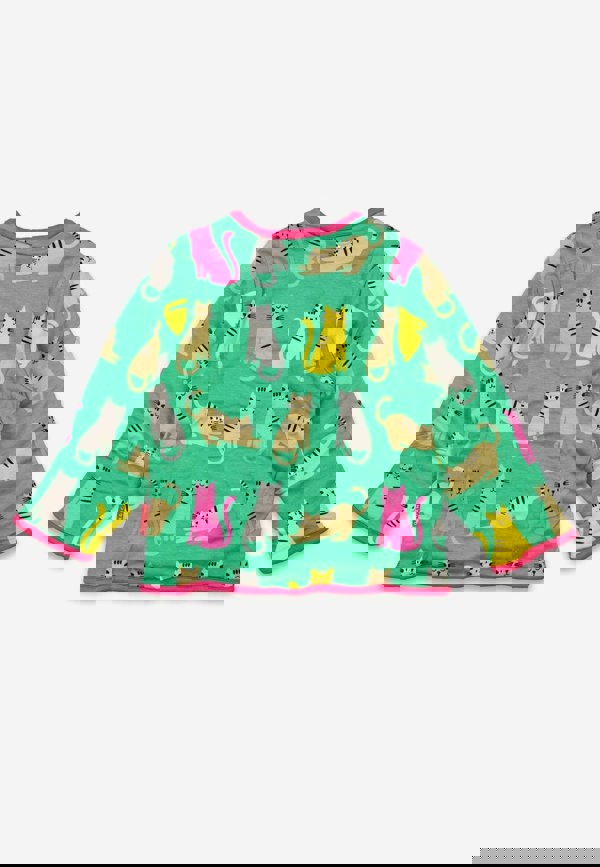 Keep your little one stylish and comfortable with our Organic Kitten Print Reversible Jacket. Made from 100% GOTS-certified organic cotton, this green jacket features a cute grey, pink, and yellow kitten print with pink trim. The cosy fleece-lined inside and side pocket adds convenience and warmth. Environmentally friendly with AZO-free dyes and machine washable.