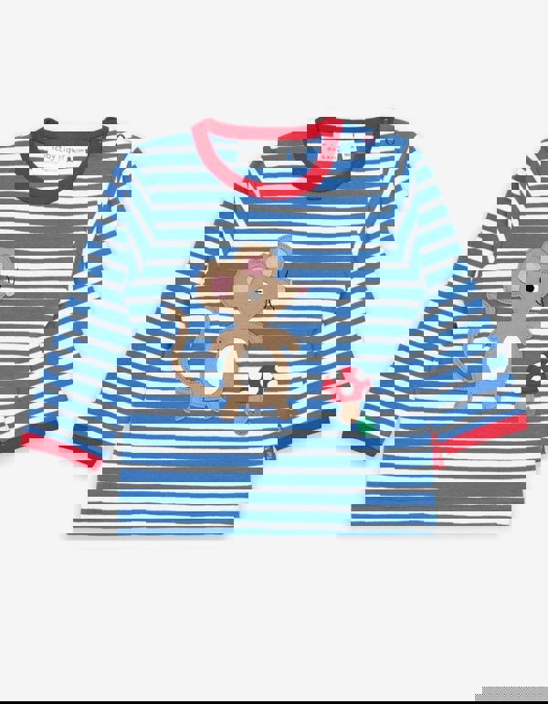 Our applique mouse may look full of mischief, but he's as sweet as can be and right at home on this stylish kids stripy organic T-shirt. Made from super soft organic cotton, this long-sleeved top will keep little ones super cosy, and our smaller sizes have neck poppers for fuss-free changing. Love our hungry little mouse? Check out our full collection of Mouse and Mushroom organic childrenswear online at Toby Tiger.
