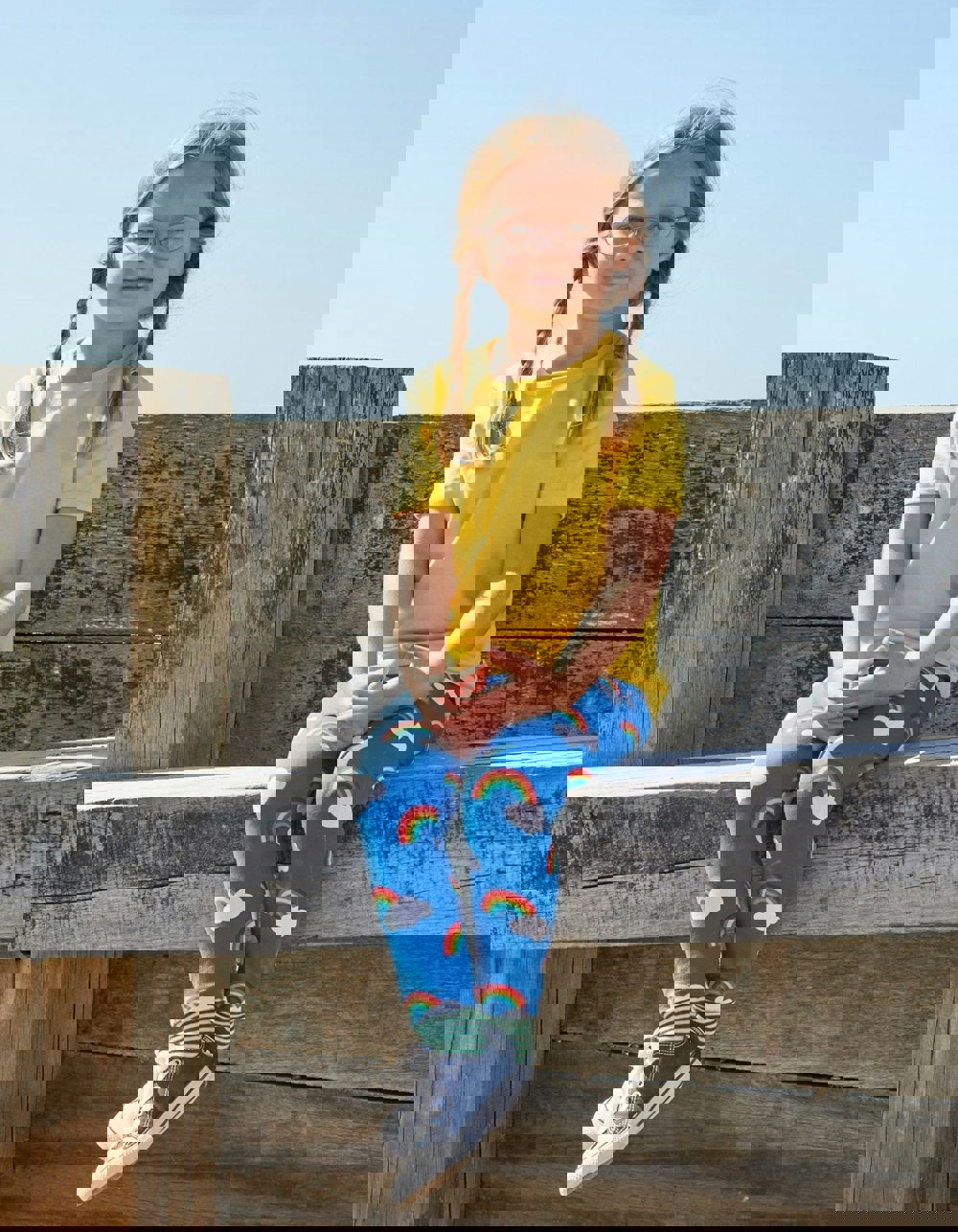 All you need is a splash of rain and a drop of sunshine to make a colourful rainbow! Our stylish leggings are so comfy your little one won’t want to take them off! Thanks to the organic cotton, they’re super soft on little legs, while the comfortable elasticated waist makes changing time a doddle.