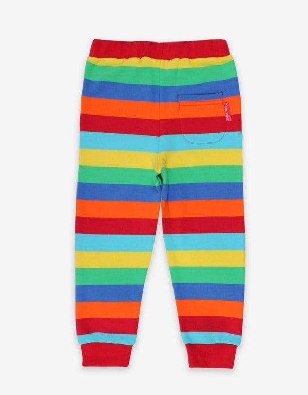 Little ones will be ready for anything in these super comfy multi stripe organic kids joggers. The soft organic cotton with stretchy ankle cuffs will keep little legs cosy and warm too. Mix and match with our organic applique or colourful basic T-shirts! Love these joggers? Check out our full collection of organic childrenswear joggers in bright and bold colours online at Toby Tiger.