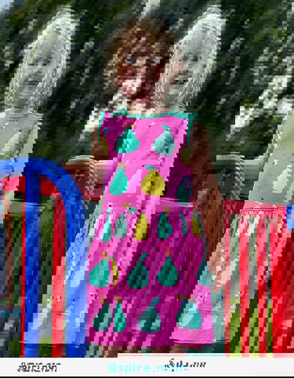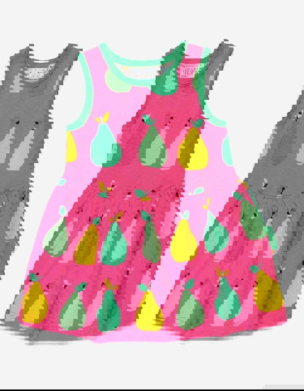 This Organic Pear Print Summer Dress is great for a twirl under the sun! Made with a soft fabric, this sleeveless pink dress will give your youngster a stylish taste - featuring a yellow and green pear design and a contrasting trim, naturally! Prepare for a summer full of playful and fruity fashion! For more matching items, check out the full Pears collection.