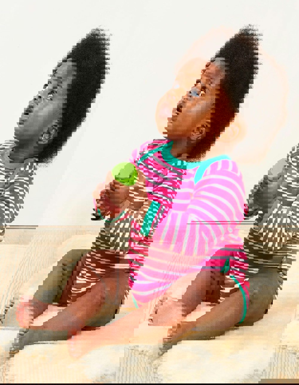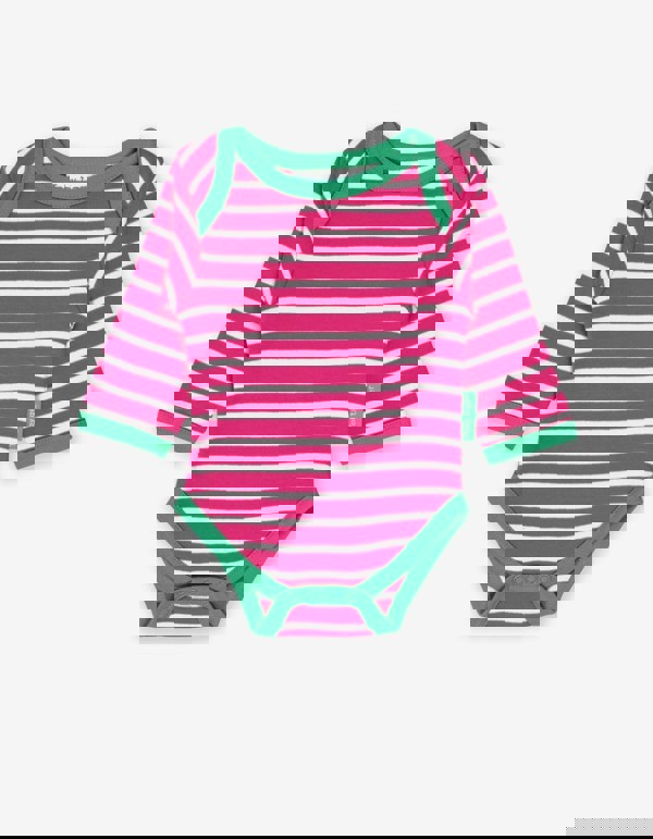 We think it's important to introduce stripes as early as possible! This classic pink Breton organic cotton body is super soft, designed with an envelope neckline to make dressing your little one that extra bit easier. And, the poppers underneath will help keep baby cosy and snug. Add a pair of our leggings or yoga pants to complete the look. And, if you've got the Breton bug, full collection of organic childrenswear in Breton stripes online at Toby Tiger.
