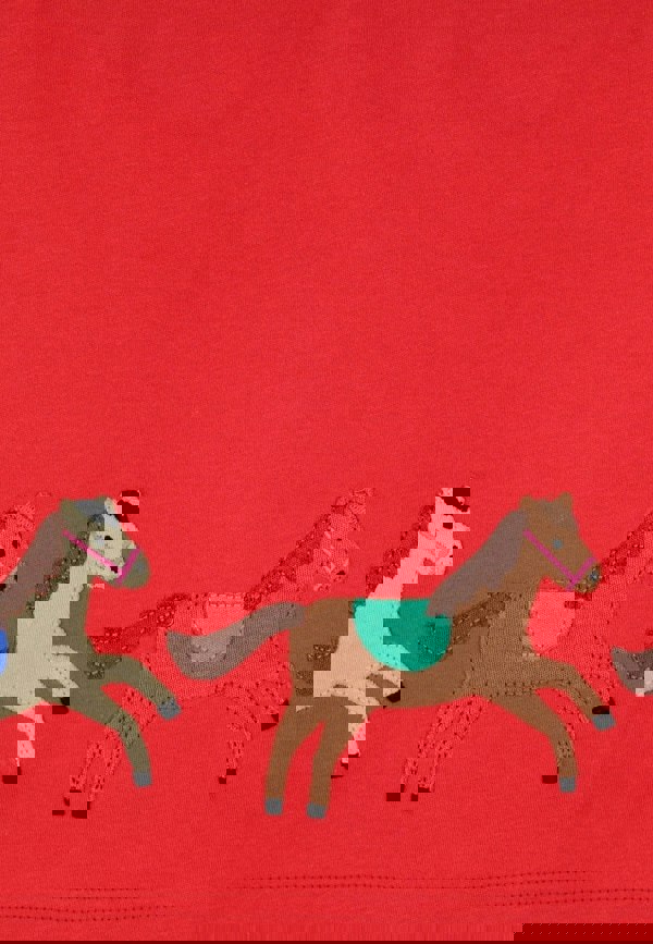 Playful appliqué horses prance around the hem, adding a playful touch that sparks imagination and fun. Available in sizes from 6-12 months up to 5-6 years, this dress grows with your little fashionista. Whether for everyday adventures or special occasions, it’s sure to bring smiles and keep your child feeling cute and happy—no horsing around!