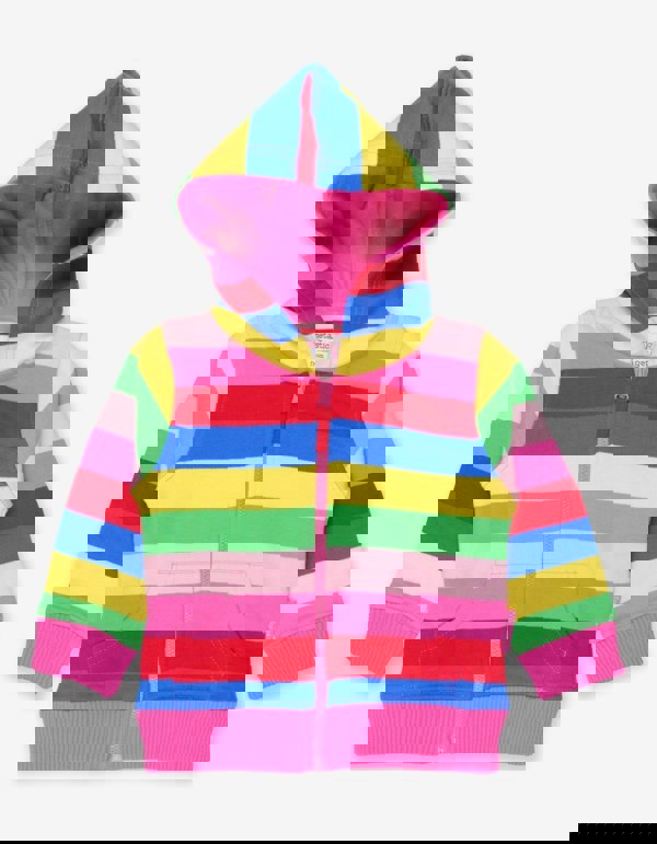 Bold colourful stripes never go out of fashion. And our lovely pink stripy-themed hoodie made from 100% certified organic cotton is a sure style staple. The warm cosy lining and hood will keep your tot comfy and warm throughout the seasons. Team with anything and everything! Take a look at our t-shirt and leggings basics for inspiration.