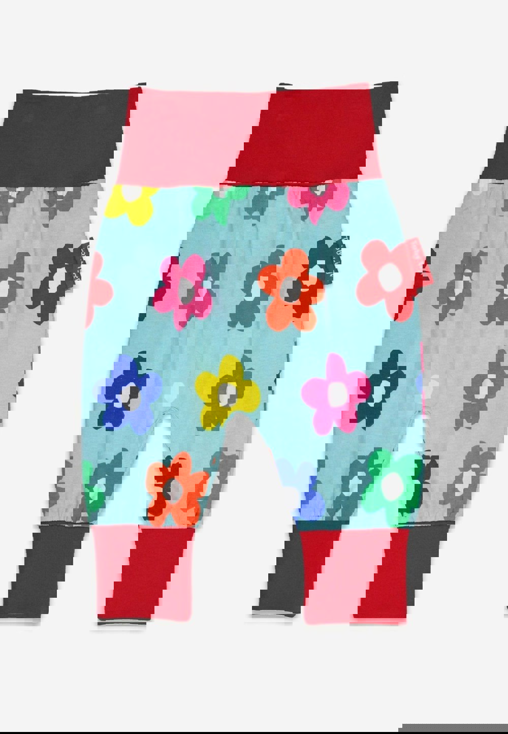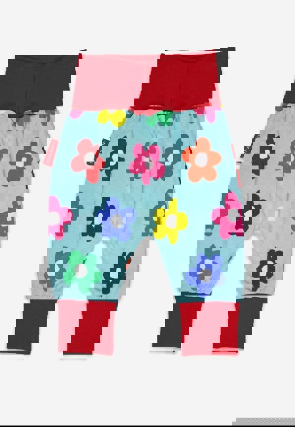 Introducing our 100% organic cotton Rainbow Bloom Print Yoga Pants! Perfect for little ones to move and snooze comfortably. These pants are cloth-nappy friendly with extra room and come in a playful blue with a red trim and colourful flower print. Eco-friendly dyes and machine washable. Part of our Rainbow Bloom Collection.