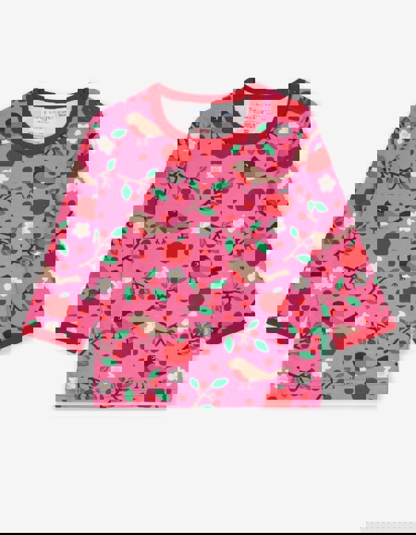 Our super cute Robin is right at home among the delicious looking apple orchard. Made from super soft 100% certified organic cotton featuring long sleeves, our printed t-shirts keep little ones warm all winter. We've added neck poppers on sizes 6-12 months and 1-2 years for fuss-free changing. Love this style? Check out our full organic childrenswear Robin collection online at Toby Tiger.