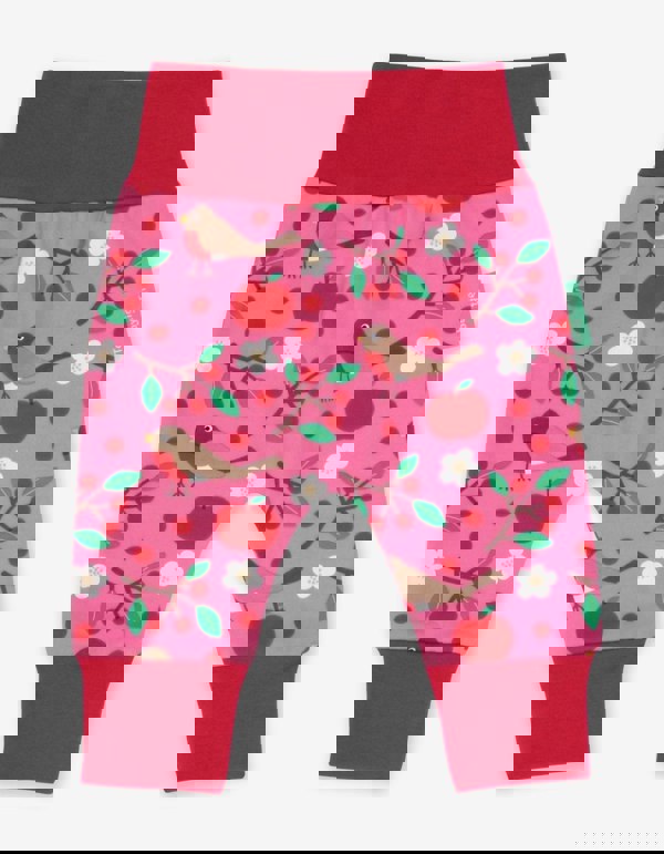 So much wriggle room, your little one will be as free as a bird in these cosy organic baby yoga pants. Made from super soft 100% certified organic cotton and with a contrasting elasticated waist and ankle bands, they make a perfect outfit when teamed with one of our plain or applique T-shirts! Love this print? Check out our full organic childrenswear collection in pink Robin online at Toby Tiger.