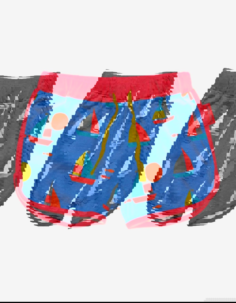 Sail into summer with these colourful sailboat print organic shorts. Made from super soft 100% GOTS-certified organic cotton with a bold red trim and adjustable yellow drawstring. Team with one of our matching organic T-shirt and check out our full sailboat collection, including yoga pants, appliques and baby essentials. Sail away with our Sailboat collection!