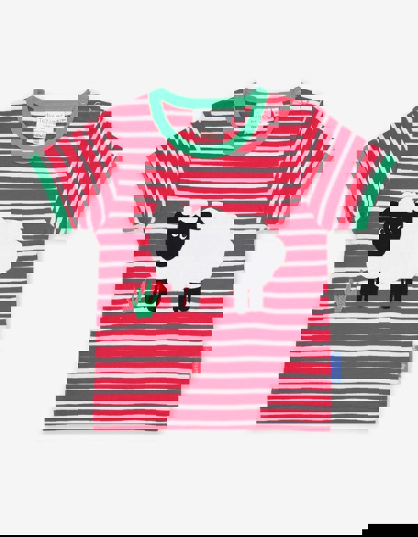 Farm day trippers will love our super stylish sheep applique organic T-shirt. With bold, colourful red and white stripes and contrasting green trim, this T-shirt is made from 100% certified organic and super soft on skin, - and our smaller sizes feature neck poppers to make changing as easy as can be. Team with our organic leggings or shorts for a serious summer style. Check out our full Farm collection.