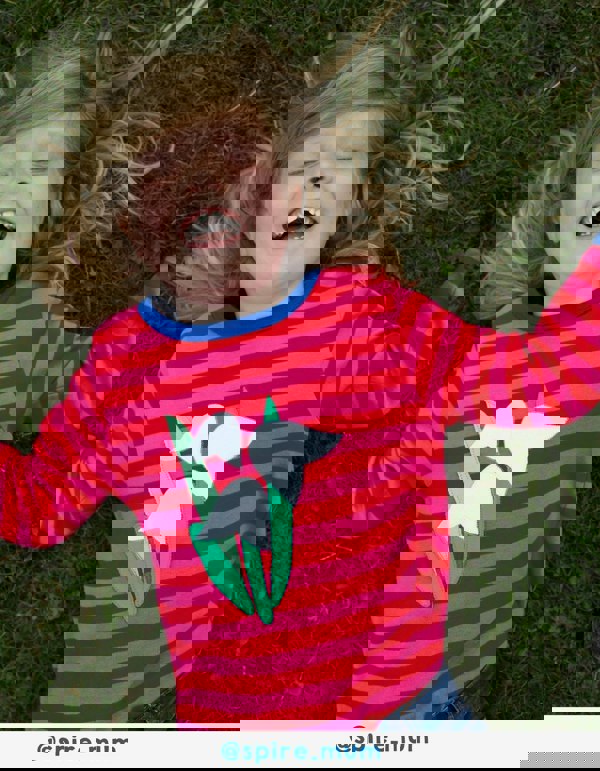 This gorgeous pink striped long-sleeved t-shirt is trimmed dark blue and finished with a sweet snowdrop applique design. Little ones will love the luxurious comfort of our organic cotton against their delicate skin. To make it even better, our smaller sizes are designed with neck poppers for quick and easy changing. Add a pair of warm and cosy yoga pants or leggings for the perfect outfit! Let them frolic in a comfy combination that keeps them comfortable and stylish - whether they're playing in the garden or taking a snoozy nap! Check out the rest of the Toby Tiger Bold Floral Collection.