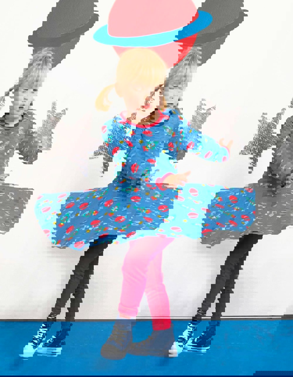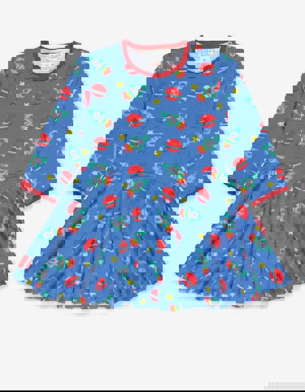 Glide and twirl into the far-off galaxy with this super-spacy skater dress! Our full skirt plus space print will no doubt equal gravity-defying moves! Made from super soft 100% certified organic cotton, we've added neck poppers on sizes 6-12 months and 1-2 years for dreamy changing.