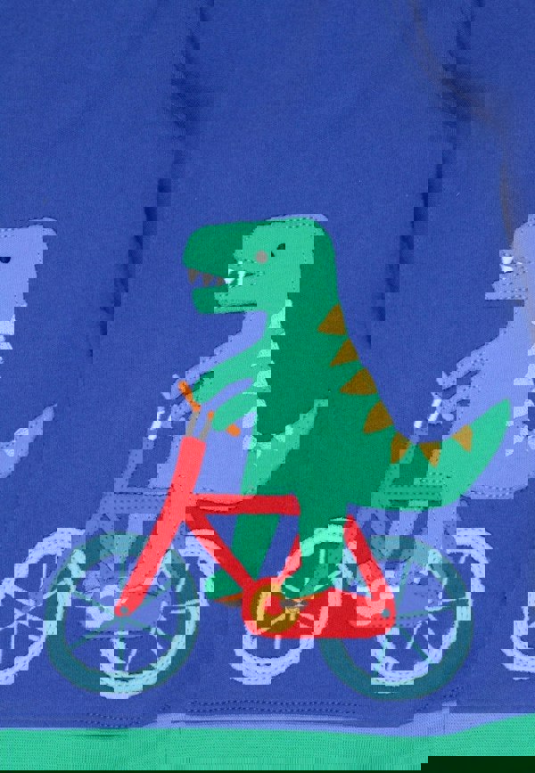 Let your little one roar with excitement and style in our Organic Toys Bicycle Dinosaur Applique Hoodie! Crafted from soft, eco-friendly organic materials, this dark blue hoodie features a playful dinosaur pedalling a bike right on the front, sparking imagination and fun.