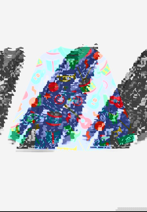 Make bedtime extra fun with our Organic Toys Print Pyjamas! Crafted from soft, cosy organic cotton, these blue pyjamas showcase a delightful print featuring playful toys like a trumpet, ball, bike, and book.