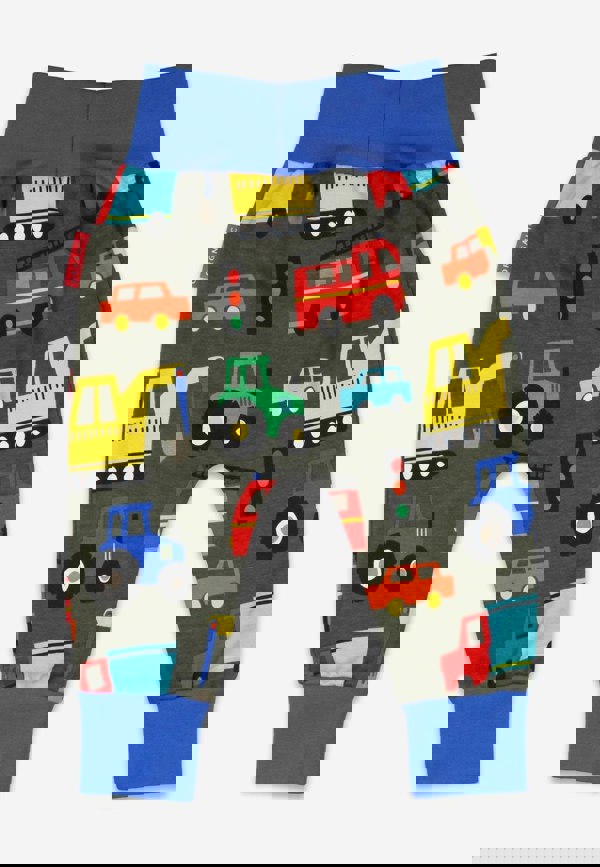 Let your little one's imagination run wild with our Organic Transport Print Yoga Pants. Made with organic materials, these dark grey toddler yoga pants feature a playful print of colourful transport figures - from traffic lights to tractors. Perfect for kids who love all things on the move!