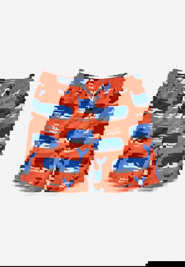 Make a splash with our Whale Waves Print Swim Kids Shorts! These orange trunks feature a playful blue and white whale and waves print, made from recycled polyester for eco-friendly and ocean-friendly wear.