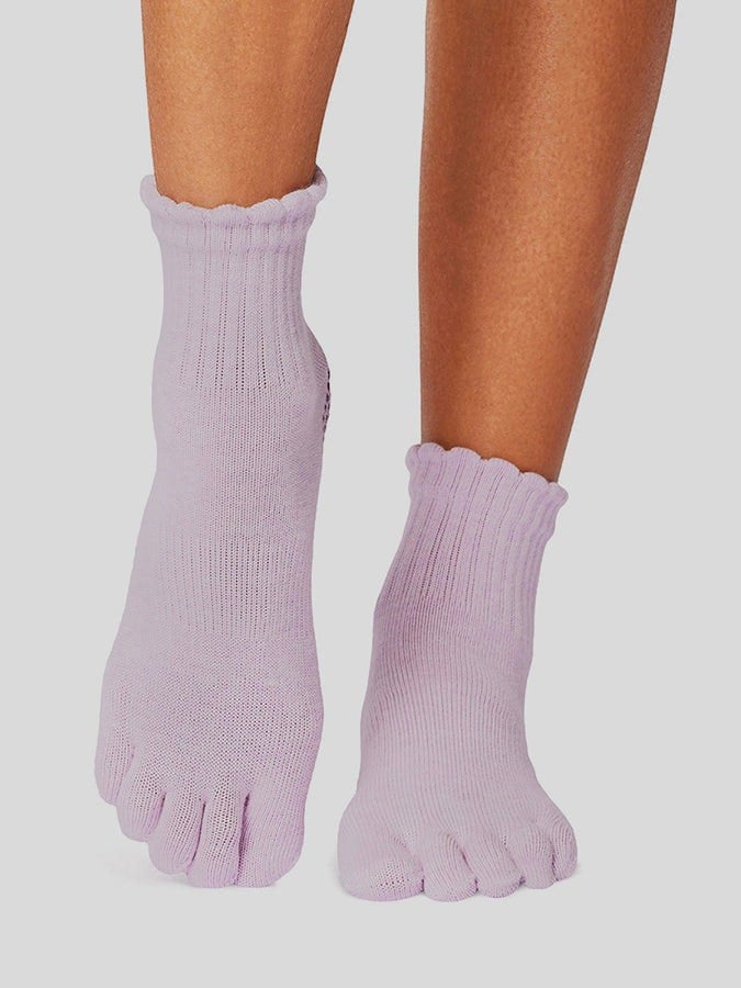 ToeSox Melody style rests just above the ankle and provides secure foot placement on the floor, mat or equipment. A hygienic alternative to bare feet. , and the perfect grip toe sock for Yoga, Pilates and Barre. Features -