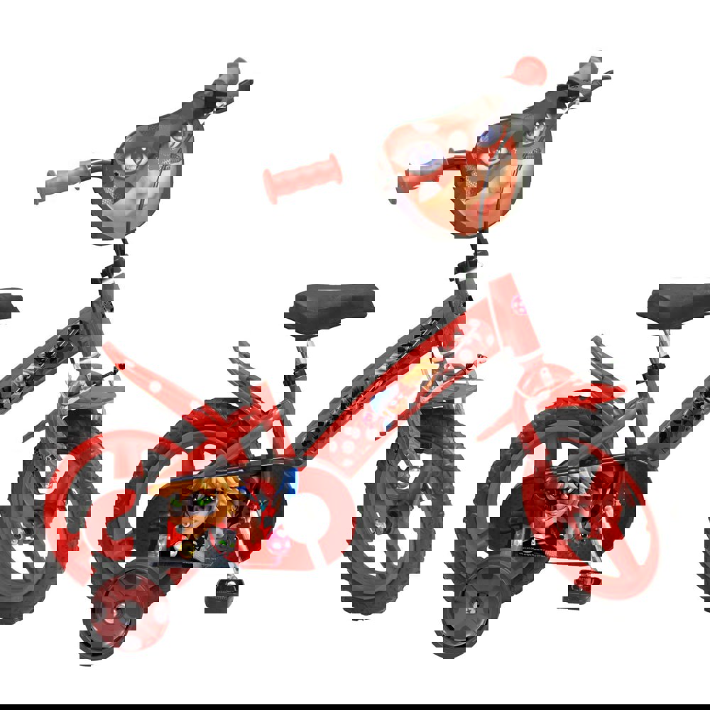 Become a superhero on wheels with this 12″ Bicycle! Designed with a fixed rear wheel for instant braking when pedalling ceases. Equipped with a robust V-type front brake, this bicycle boasts 12″ wheels featuring mudguards and puncture-resistant EVA tires. It includes detachable stabilizers adorned with spots, adjustable saddle and handlebars, and a prominent Miraculous front shield.