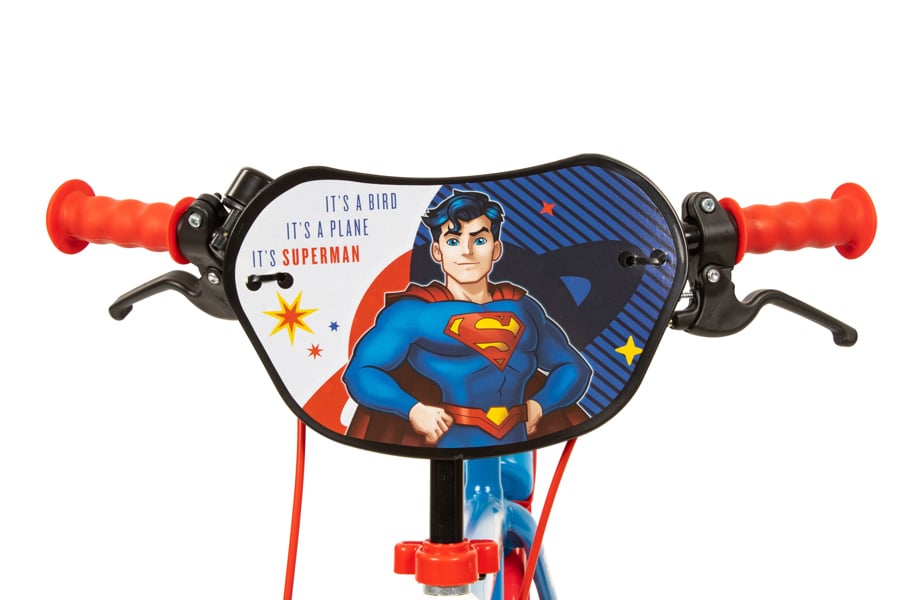 Equipped with a rear drinks holder and bottle, the bike keeps young heroes refreshed. The standout feature is the Superman front shield with captivating decals, sparking imagination.