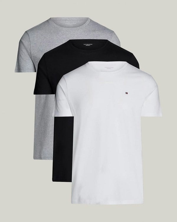 Tommy Hilfiger 3 Pack Mens T-Shirts in White/Black/Grey Heather
