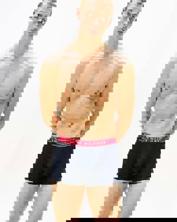 Tommy Hilfiger 3 Pack Mens Waistband Trunks in B-White/Red/Navy