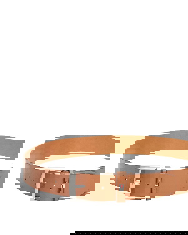 Tommy Hilfiger Adan Tonal Square Buckle Mens Leather Belt in Cognac