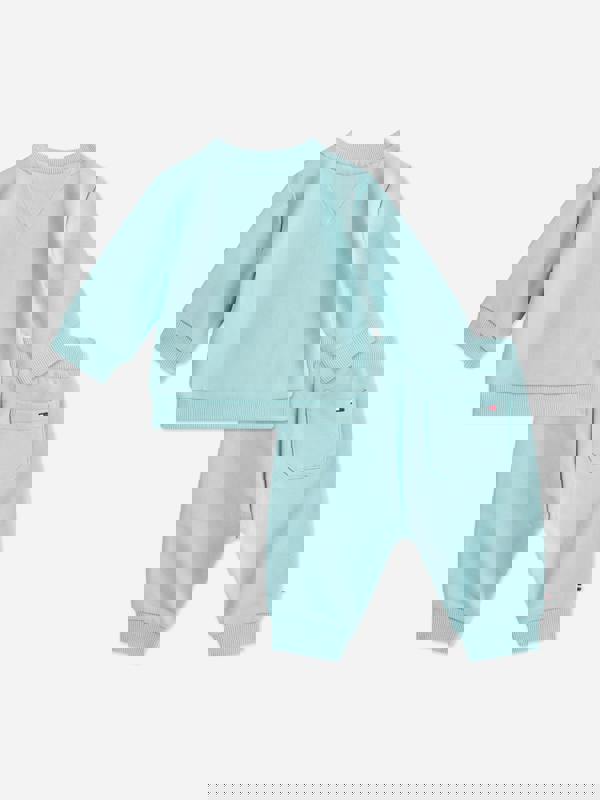 Tommy Hilfiger baby boys monotype tracksuit in navy for SS2026. This two-piece set comes in a navy monotype pattern for a clean, coordinated look.