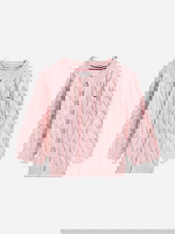 Delight in the elegance of the Tommy Hilfiger Baby Girls Cable Knit Trouser Set in Pink, a quintessential ensemble for SS2026. Perfectly tailored to combine grace and comfort, this set promises to elevate the style quotient of your little girl's wardrobe.