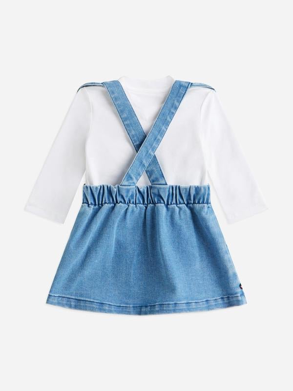 Subtle Tommy Hilfiger branding adds a recognisable designer finish. This is a coordinated set with a dungaree-style dress as the main piece.