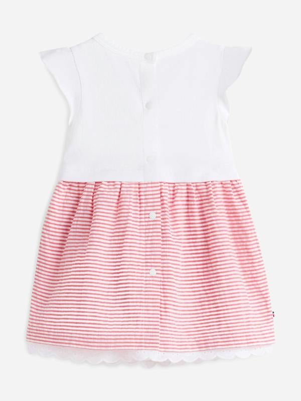 From Tommy Hilfiger, the Baby Girls Seersucker Combi Dress brings a bright red finish to a warm-weather wardrobe. Designed for SS2026, it pairs a classic seersucker look with a breathable feel, making it a considered choice for days when comfort matters as much as style.
