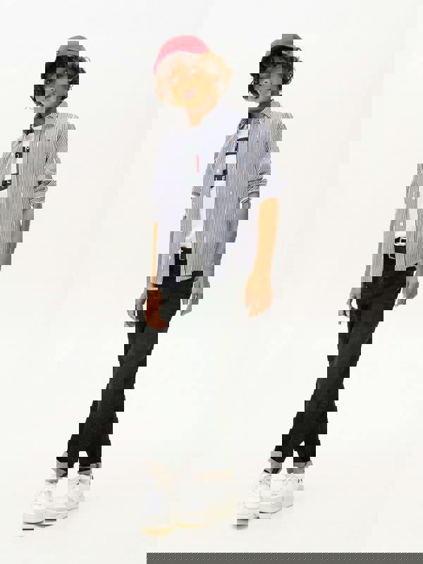 Tommy Hilfiger boys AOP jersey shirt in navy for SS2026. The all-over print carries Tommy Hilfiger’s iconic design, bringing a bold look to a classic wardrobe staple. Made in jersey, it offers a comfortable option for everyday wear.