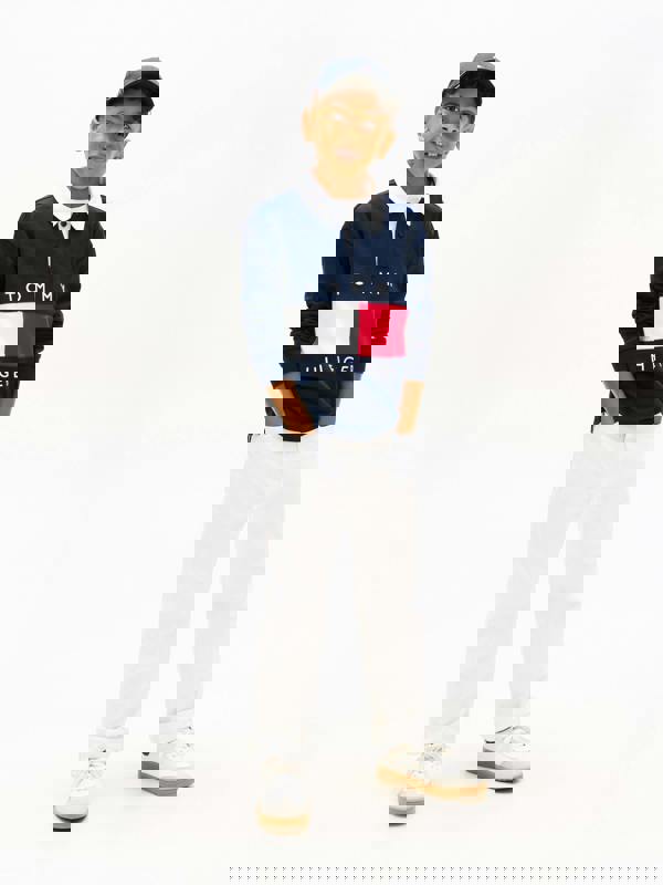 Tommy Hilfiger Boys Heritage Flag Jersey Polo Shirt in navy brings a clean, heritage-led look to the SS2026 collection. Made in jersey, it keeps the finish simple and classic, with an embroidered Tommy Hilfiger flag detail for a recognisable brand sign-off. The navy colourway offers a sharp, timeless appearance that suits a range of outfits.