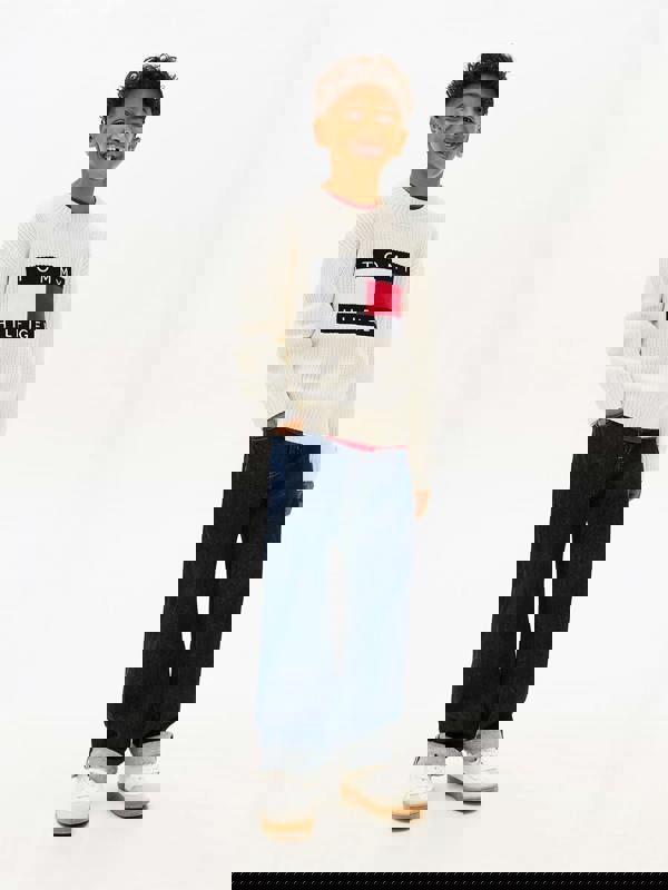 Tommy Hilfiger Boys Heritage Flag Sweater in ivory for SS2026. The heritage flag design adds a recognisable Tommy Hilfiger detail, set against a clean, light-toned finish. A soft handle supports comfortable wear, making it a practical option for everyday outfits.