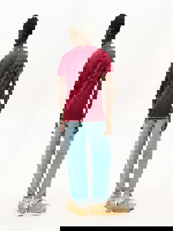 Tommy Hilfiger boys monotype print graphic T-shirt in red for SS2026. The vivid red base is finished with a monotype print for a bold graphic look.