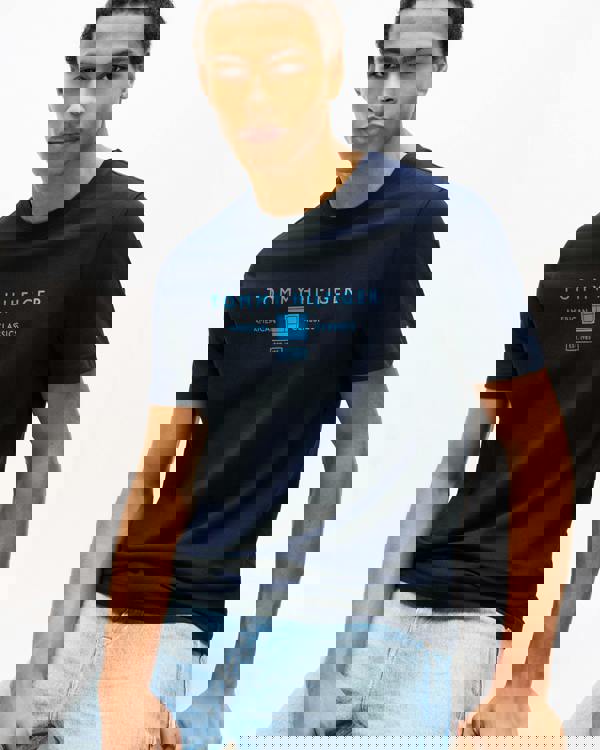 Clean and understated, the Tommy Hilfiger Brand Love Mono Stack mens T-shirt is a simple staple for everyday dressing. Shown in Desert Sky, it comes with short sleeves and works well worn on its own or layered under a shirt.