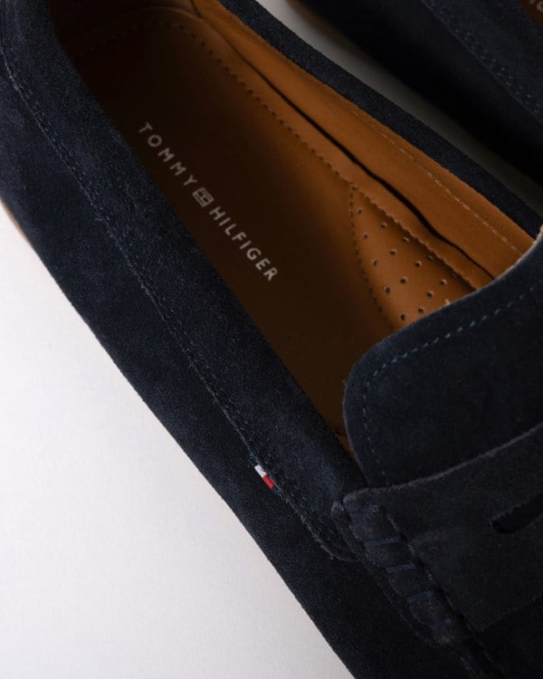 Discover designer men's shoes with Tommy Hilfiger's Casual Hilfiger Suede Men's Driving Shoes in Desert Sky