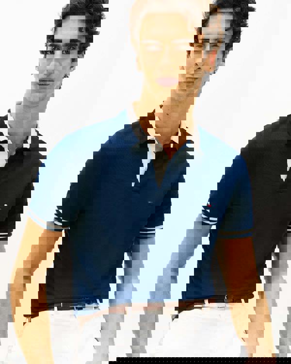 Discover designer mens polo shirts with Tommy Hilfiger's Contrast Collar Block Regular Fit Mens Polo in Carbon Navy