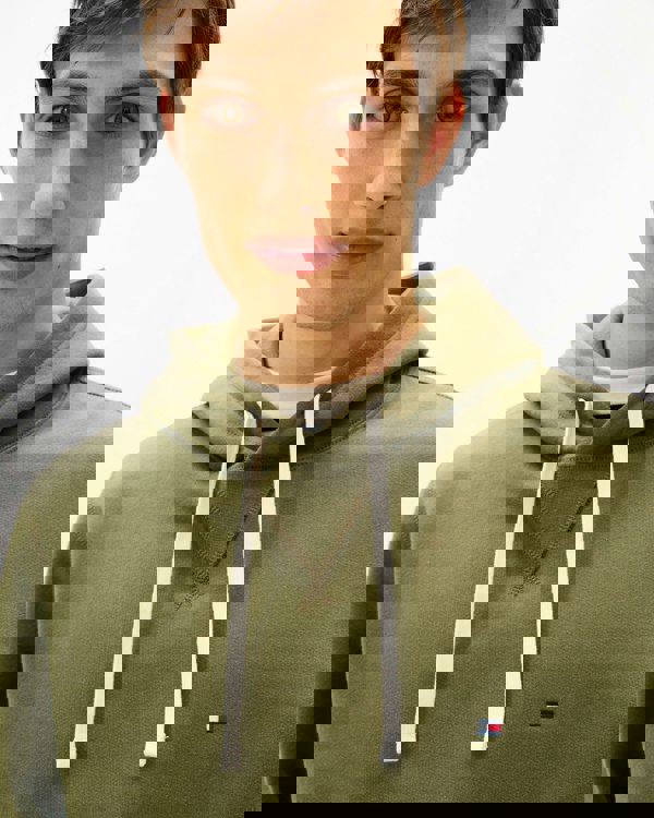Tommy Hilfiger Essential Flag Embroidery Mens Fleece Hoodie in Battle Green