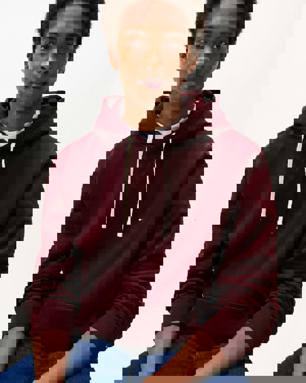 Tommy Hilfiger Essential Flag Embroidery Mens Fleece Hoodie in Deep Burgundy