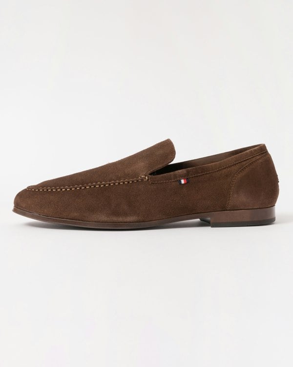 Discover designer men's shoes with Tommy Hilfiger's Flexible Suede Men's Loafer in Legacy Brown