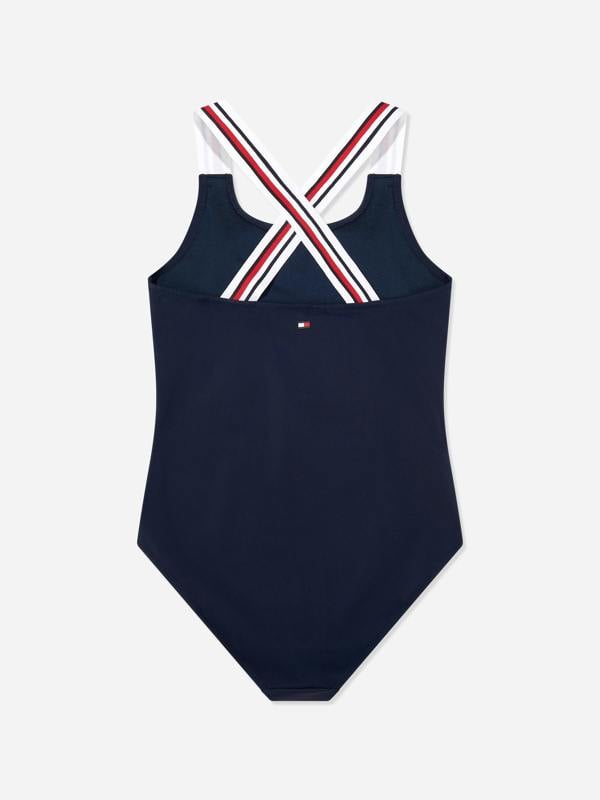 From Tommy Hilfiger, this girls’ cross-back Swimsuit in navy brings a clean, considered look to swim days, whether she’s heading to the pool or packing for a sunny holiday. The cross-back design adds a subtle style detail while supporting easy movement in and out of the water, making it a practical choice for active young swimmers.