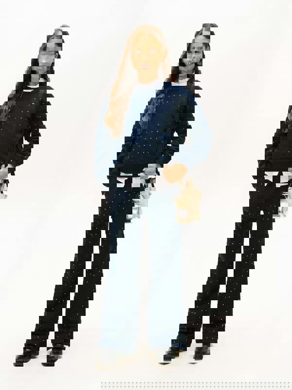 Tommy Hilfiger girls festive stud sweatpants in navy bring a clean, versatile look with a decorative stud detail. The navy colourway keeps the finish classic and easy to pair, while the stud embellishment adds a subtle statement for festive moments and everyday wear.