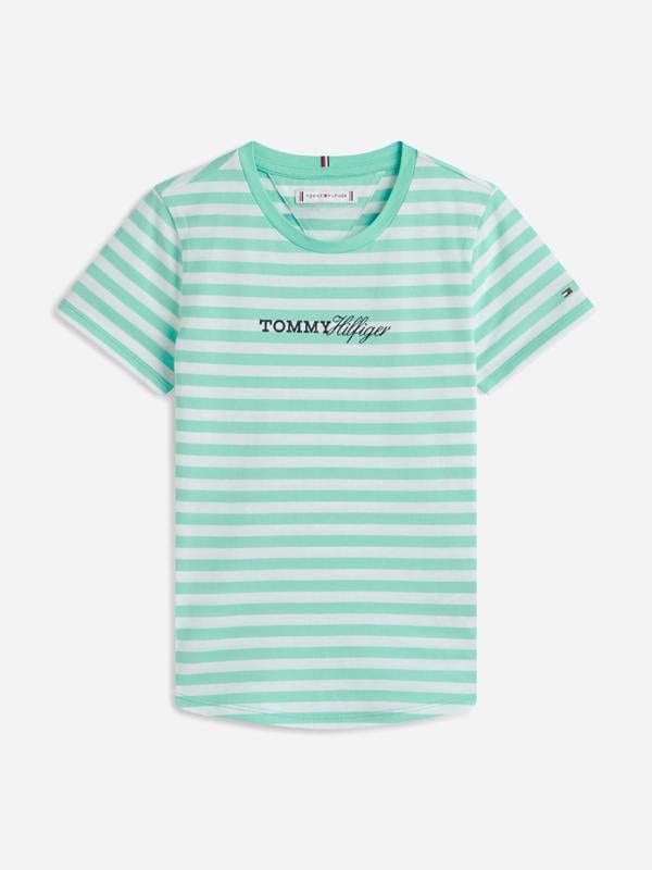 The Tommy Hilfiger Girls Glitter Logo Striped Short Set is a coordinated outfit designed for SS2026. Presented in khaki with green accents, it features a striped design and a glitter logo detail for a standout finish. Ideal for everyday wear, this set offers an easy, put-together look while keeping things comfortable throughout the day.
