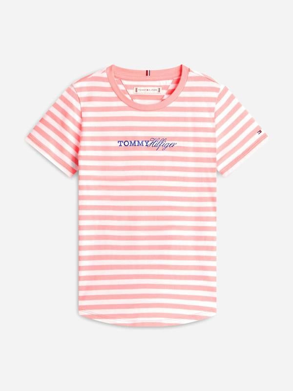 The Tommy Hilfiger Girls Glitter Logo Striped Short Set in pink is a coordinated outfit designed for SS2026. Featuring classic stripes and a playful glitter logo, it brings a bright, contemporary look to everyday dressing and casual outings.