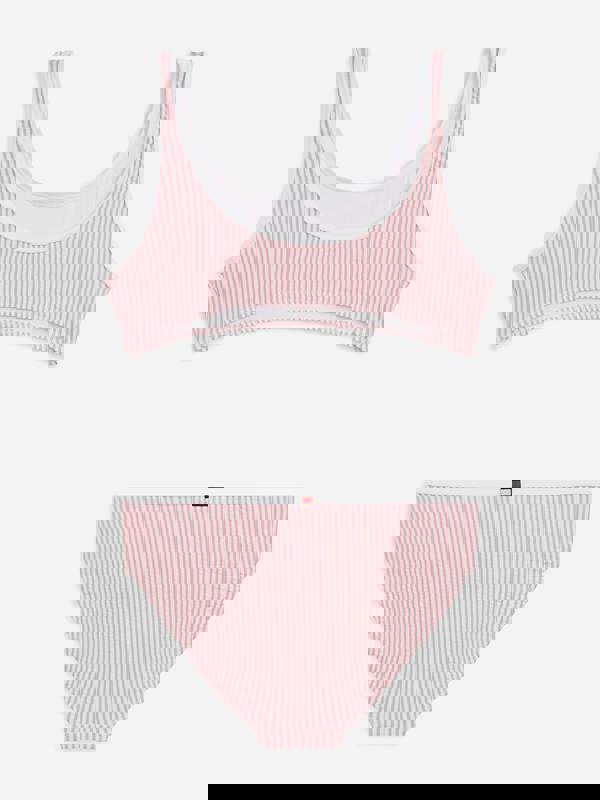 Indulge in sartorial elegance with the Tommy Hilfiger Girls Seersucker Bikini in Pink. Crafted with exquisite attention to detail, this essential SS2026 piece exudes timeless charm and playful sophistication for your young lady. Key features include:
