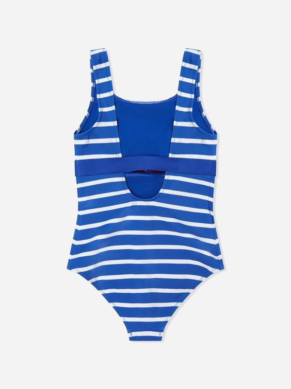 From Tommy Hilfiger, this girls’ Square Neck Striped Swimsuit in blue brings a clean, nautical look to sunny-day dressing. Designed with bold navy stripes, it offers a timeless style that feels at home by the pool or on holiday.
